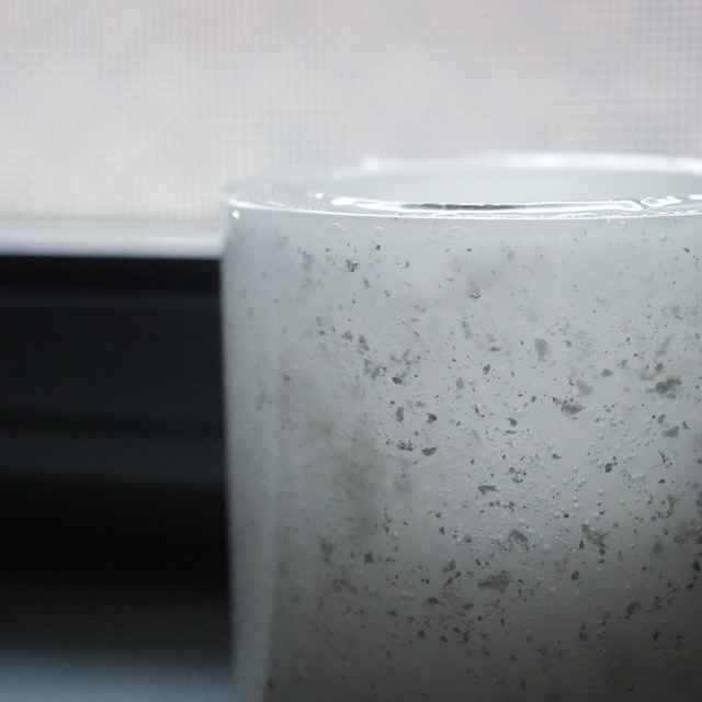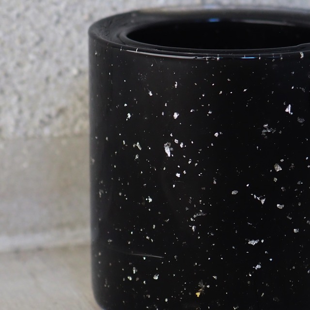 銀箔をふんだんに使ったランタン 陰陽の陰のカラー シンプルなデザインですが、 グラスから灯火が、癒しを与えてくれます。 中のティーライトは、ソイを使っています。 灯し終わった後も市販のティーライトでも 灯して頂けます。 大きさ約8cm×直径8cm